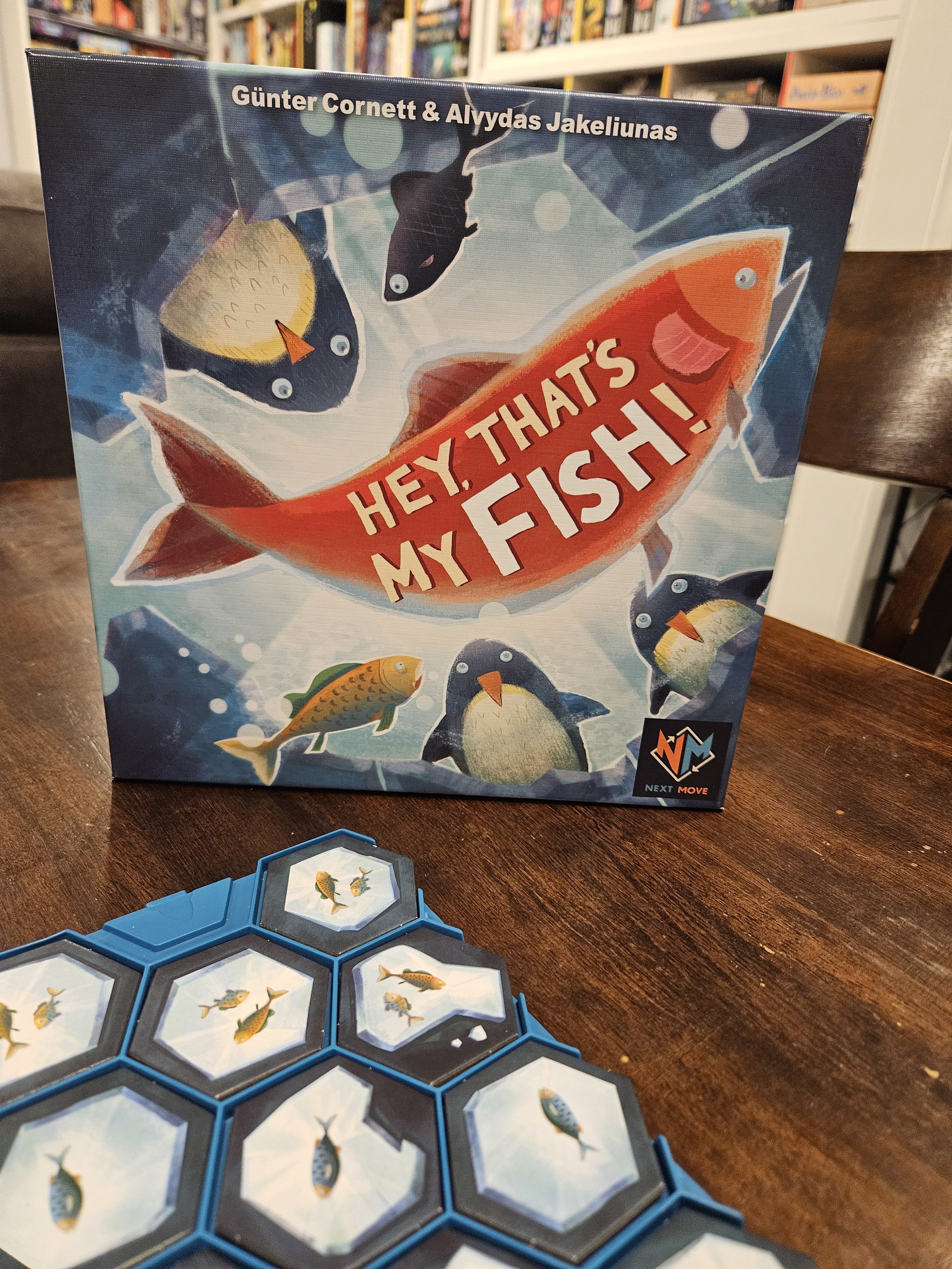 Being a serious hobby gamer, I am always drawn to the heavy, table-hog worker placement, resource management, action selection, five-hours-later type of games. Sometimes, though, it is the cute artwork or silliness of a game’s name that can totally draw me in like Hey, That’s My Fish! did. I actually first ran across the game scanning for deals online, but opted out on buying the game at that time. Then recently, lo and behold, Hey, That’s My Fish! showed up in an order that was recently delivered to the cafe. Yay me, now I actually get to try before I buy.